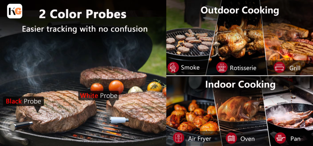 - Repeater: Fully charges in 3 hours, offering up to 100 hours of monitoring, ensuring uninterrupted cooking sessions without frequent recharging.